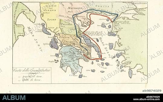 El recorrido de este libro se centra en el las costa norte del Egeo y en el occidente del territorio griego y macedónico, para terminar en un apasionante capítulo -del libro y de la Historia- que se desarrolla entre las montañas y el mar de las Termopilas.
