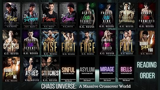 K.G. is the author of The Everlasting Chronicles series, Emissary of the Devil series, The Chronicles of Winterset series, The Middle Road (with co-author CM Lally) Black Falls High series, Hard Pass, and Kings of Bolten with a ridiculous amount of other series set to be released.