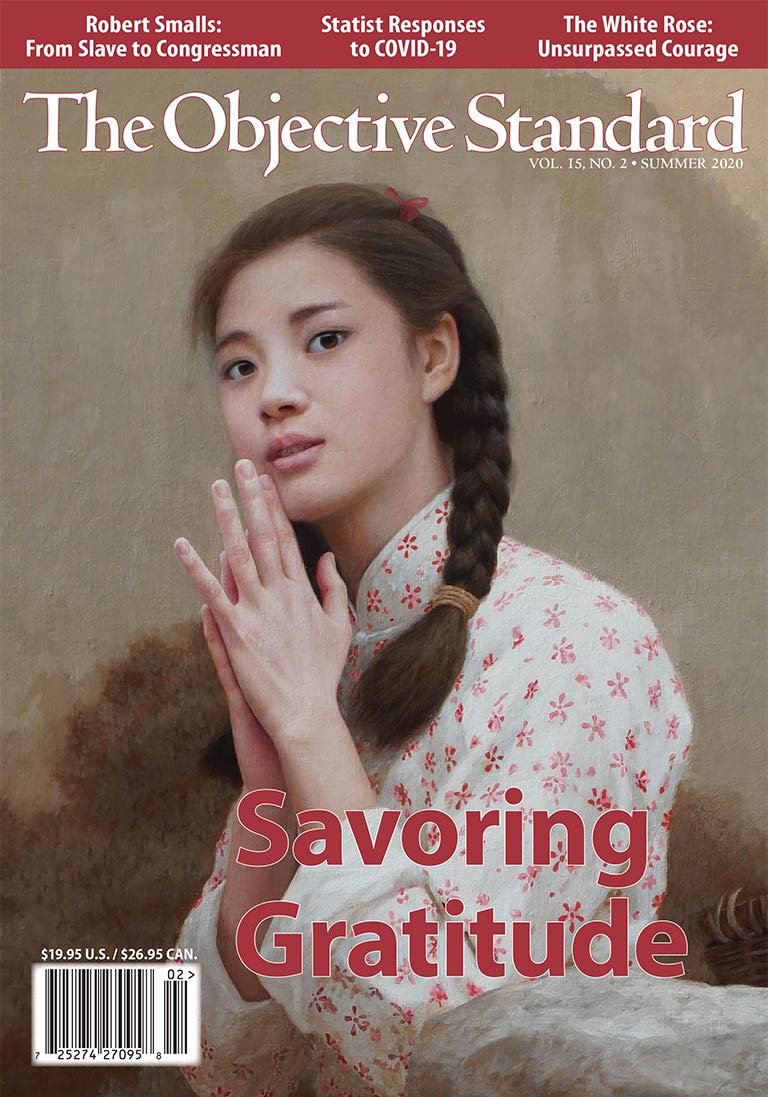 • How to Savor Gratitude and Disarm “Gratitude Traps” by Ellen Kenner • The White Rose: A Story of Unsurpassed Courage by Andrew Bernstein • ‘The Earth Becomes My Throne’: Individualism in Metallica’s Black Album by Thomas Walker • Robert Smalls: From Slave to War Hero, Entrepreneur, and Congressman by Tim White • Miami Beach’s Art Deco Answer to the Great Depression by Joseph Kellard • Statist Responses to COVID-19: An Interview with Michael Fumento, interviewed by Jon Hersey • How Heroes Improve Our Lives: An Interview with Andrew Bernstein, interviewed by Jon Hersey • Lockdowns Versus Living by Jon Hersey • Lessons from Wisconsin’s Stand for Freedom by Jon Hersey • COVID-19 and the Future of Educational Freedom by Kerry McDonald • Heroes of the Pandemic by Jonathan Townley • Silver Linings in State Responses to COVID-19 by Jared M. Rhoads • “Stimulus” Packages: Cure or Disease? by David Veksler • Twenty Soul-Fueling Works of Art to Check Out While You’re Stuck at Home by Tim White • Twenty More Soul-Fueling Works of Art to Get You Through the Lockdown by Tim White • How Teaching Benefits Teachers by Arie Vilner • Isabella Stewart Gardner: ‘One of the Seven Wonders of Boston’ by Jon Hersey • So Who Is John Galt, Anyway? by Robert Tracinski, reviewed by Andrew Bernstein • America’s Revolutionary Mind: A Moral History of the American Revolution and the Declaration That Defined It by C. Bradley Thompson, reviewed by Jon Hersey • The Case against Socialism by Rand Paul, reviewed by Keith Sanders • Range: Why Generalists Triumph in a Specialized World by David Epstein, reviewed by David King • The Witcher by Lauren Schmidt Hissrich, reviewed by Tim White • True Grit by Charles Portis, reviewed by William Nauenburg • Anne with an E by Moira Walley-Beckett, reviewed by Jon Hersey