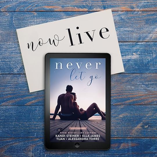 Never Let Go is a collection of four best-selling novels including: A Love Letter to Whiskey by Kandi Steiner Sloth by Ella James Teardrop Shot by Tijan Love in Lingerie by Alessandra Torre