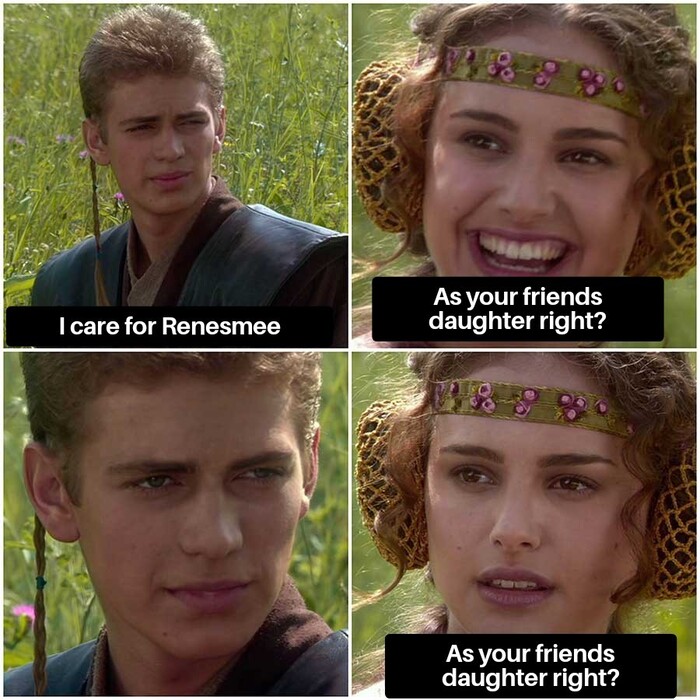 1. Several times in this book, events were just glossed over in a sentence. "Oh by the way, I met with The Bad Guy, alone, and he was like annoying or whatever." I hate to be a reviewer who repeats "Shooooooooooooooow, don't tell!" over and over, but this book could have done with some worldbuilding. 2. This may be a critique on monarchy as a whole, but what in Dana's name is everyone thinking having an 18-year old on the throne? This is a terrible idea lmao. Feels like those sitcom dream episodes where the high school student becomes mayor or whatever for a day and is first like "Yeaaaaaaah! This is awesome! Free ice cream for everyone!" and then 10 minutes later in the episode has an angry mob at the door because the moral of the story is Adulting Is Hard. 3. And you know, baby grooming matchmaking. Thanks I hate it.