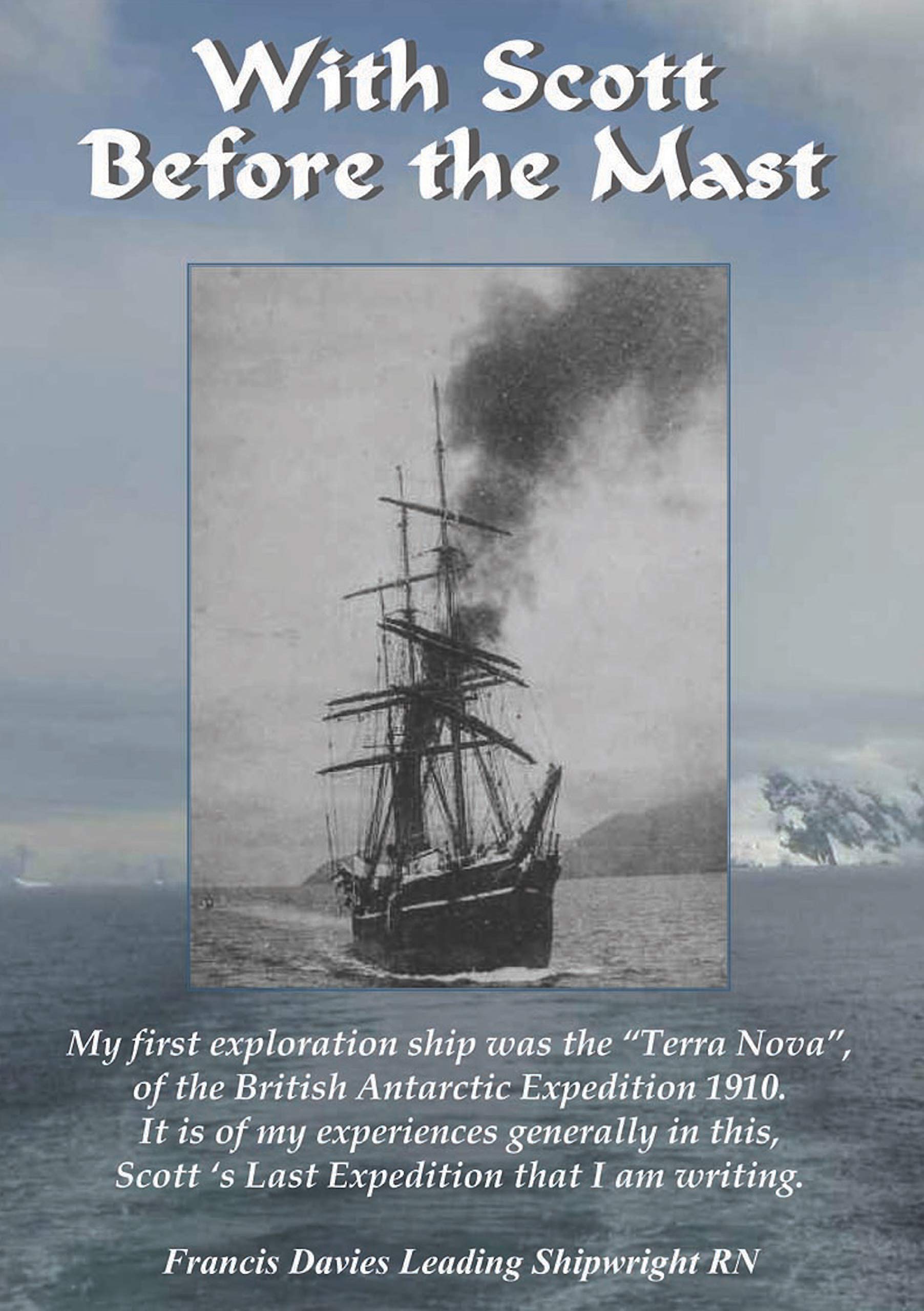 British Antarctic Expedition 1910 – 1913. My interview with Captain Scott, he explained what would be expected of me. My principal job, he said, would be the erection of Winter Quarters for the Southern party, which was to make an attempt to reach the South Pole..... He also told me that I would be paid GBP40 a year, adding that if I made a success of the job, he wouldn't say what he would do for me, but if on the other hand, I failed to come up to scratch, I would be for the high jump. The geographic and scientific accomplishments of Captain Scott's two Antarctic expeditions changed the face of the Twentieth Century in ways that are still not widely appreciated over a hundred years later. The fact of accomplishment has tended to be lost in speculative argument as to how Scott should have done this instead of that, supposedly to achieve the extra few yards per day to save the lives of the South Pole Party in 1912. Also lost to a generation overwhelmed with information, however, is the sublime sense of adventure into the unknown, which Scott's expeditions represented to his generation. We have forgotten what it is to take the awesome life-gambling risk of sailing beyond the edge of the map into nothingness and rendering it known. We send robot explorers instead. As a result, after two millennia of maritime and exploration history, we have become detached from the sea which surrounds our island and the tradition of exploration which it represents. With Before the Mast is a unique account that serves as an antidote to this disconectedness. It is no fictional 'Hornblower', although it may seem so at times. This is a true story. It presents one man's account of his part in a great act of derring-do, the assault on the South Pole in 1912. Most records of Captain Scott's British Antarctic Expedition aboard Terra Nova (1910-1913) are the accounts of officers. With Before the Mast is the story of Francis Davies, Shipwright, R.N., and Carpenter. The title says it all but may be lost on landlubbers. Before the mast means 'to serve as an ordinary seaman in a sailing ship'. This makes it a rare and hugely important account, presenting a viewpoint from the lower ranks. Such insight is rarely available and the long overdue publication of this account is greatly to be welcomed. When I first read this manuscript some years ago, I was hugely excited by the refreshing perspective that it gave to a well-aired story. Although an autobiographical period piece, written with an eye to publication many years after the events that it recalls, it is still of great interest. It tells the often forgotten story of the vast majority of Scott's men, the sailors of Terra Nova; the supporting cast, if you like, to the Shore Parties of officers and scientists. Through a kaleidoscope of memories, this book gets to the heart of the huge logistic effort that was the British Antarctic Expedition.
