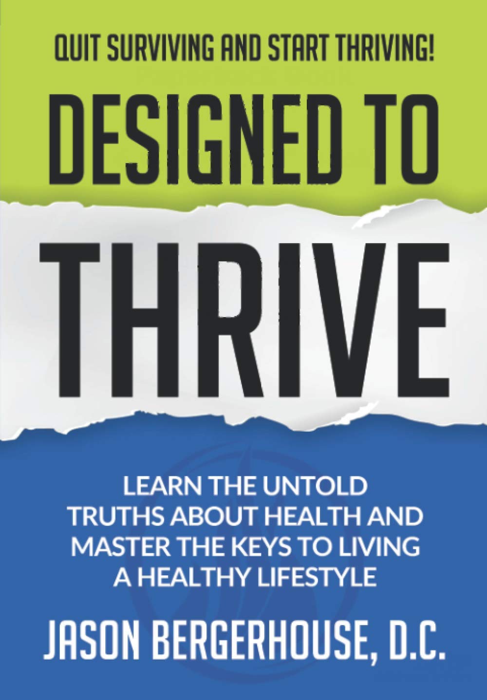 ARE YOU SURVIVING OR THRIVING? This is perhaps one of the most important questions to ask yourself right now. Unfortunately, many people in the modern world are not thriving; they are merely surviving and not living up to their fullest health potential. Most of us do not know how to shift paradigms regarding health care to live a healthier lifestyle. Our idea of a healthcare system is entirely counterintuitive to what real health care should be. You simply cannot expect to achieve true health by masking your symptoms with drugs and medicine. “You Cannot Poison Your Body Back to Health.” – Dr. Jay One should feel empowered to take a proactive approach to their health rather than a reactive one and Dr. Jason Bergerhouse (Dr. Jay) does a great job motivating the reader to do this. Covering the three main pillars of health, Mind, Body, and Spirit, Designed to Thrive will guide you through a wide gamut of topics that will inspire you to take action towards achieving your optimal potential. Dr. Jay dives into important topics, such as The Perils of Modern Medicine and the Power of Your Mindset. Designed to Thrive also addresses a primary key concept when it comes to removing “interference.” To be healthy a person must work diligently to eliminate interference and add good things into their life. Designed to Thrive is packed with thorough and inspiring information, along with actionable items consisting The Power of the nerve system and removing neurological interference. Hydration and what kind of water to drink. Foods to help you thrive. Wheatgrass and how to grow it yourself - why it is important. The importance of exercise, breath control, stretching, and soft tissue work. Removing the interference of toxicity in your life. The power of sleep. Reducing exposure to electromagnetic frequency. Spiritual dimensions involved in health are also explored in the book as Dr. Jay presents the concept that we were designed on purpose and, therefore, MUST have a purpose. This is ultimately the spiritual component that encapsulates who we are as individuals and WHY we are here. He also makes the argument that one’s health is fundamental to living a life on purpose. Actionable steps such as the power of meditation, prayer, affirmations, and visualizations and how they can help you create a better life for yourself and family are discussed in detail. Dr. Jay’s background as a chiropractor gives him an excellent platform to be able to engage in philosophical, scientific, and common-sense applications to help you thrive in life. By reading this book, you will be inspired to start removing interference from your life and start living a life of abundance!