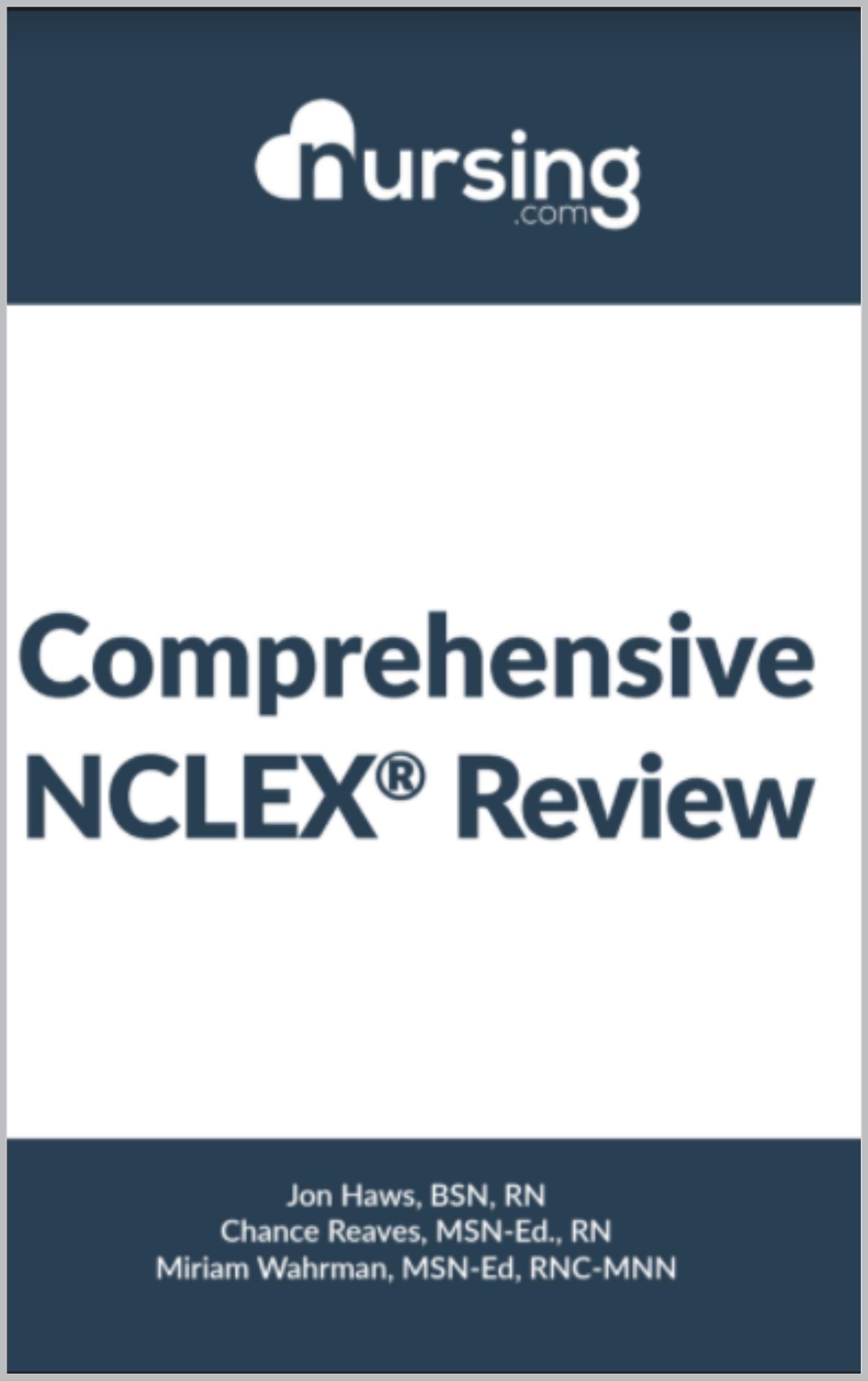 An NCLEX® Review Book Unlike Any Other The NURSING.com Comprehensive NCLEX® Review book is unique. While leading NCLEX® review books are published by enormous publicly traded companies who specialize in book publishing, our book is written and published by a team of 23 practicing nurses who specialize in . . . nursing. So when you review a disease process, you are learning from Masters prepared nurses who JUST took care of that patient in the hospital - it's like having a caring nurse preceptor at your side. Every outline, every question and rationale, and every image goes through a rigorous proprietary approval process so you can rest confident in your readiness. Clear, Concise, And Visual Our nurses have done the hard work of curating the critical "must know" information with strategy for you so that you save time as you review. What does that mean? Just 458 concise pages. 57 full-color cheatsheets and 159 full-color images. It does not cover all 9,432,856 diseases you learned in nursing school - covers just the "must know", the same process we use in our courses - which boast a 99.86% NCLEX pass rate. Pass your boards with this all-in-one study guide for success on your exam. Aligns with most current NCSBN Registered Nurse Examination assessment. Eye Appealing And Engaging Color coded pages help you quickly 458 concise full-color pages 100 NCLEX practice questions with rationales 57 nursing cheat sheets cards (full-color) 159 images (full-color) Are You Ready To Pass NCLEX? How to pass the NCLEX 11 test taking strategies Fundamentals for NCLEX Maternal nursing for NCLEX Pediatrics for NCLEX MedSurg for NCLEX Mental health for NCLEX Community health for NCLEX