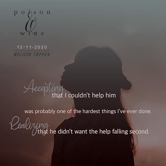 HOLY HELL! I was not expecting Poison & Wine to hit like it did, and because of that, I'm not trying to give much description or naming names. This story was chalk full of so much emotional turmoil that every last one of my emotions were out running amok. My heart splintered, my eyes went rogue to flood my blanket, and the pain just seeped out of my kindle so I was wrapped up in like it was my own. I mean, what a gift Melissa Toppen has to convey what she did so realistically that I'll never be the same to be honest. Trying to help the person we love who is on a path of destruction to the aftermath of addiction when it comes to the people who love them, and that frustrating task of repairing the damage & trust. So yeah, get your tissues ready & hit those one click buttons for an emotional ride! HIGHLY HIGHLY HIGHLY RECOMMEND!