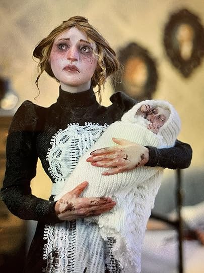 The art was good, and I actually found the illustrations portraying the past to be evocatively authentic and more to my liking than the modern-day depictions. I enjoyed the chapter openings that showed creepy dolls that gave a hint of what was to come. Some of the lettering in my online copy was off, such as additional details to the side of the illustrations that were covered by the art or so faint as to be unreadable. I would hope in a print edition this would be corrected.