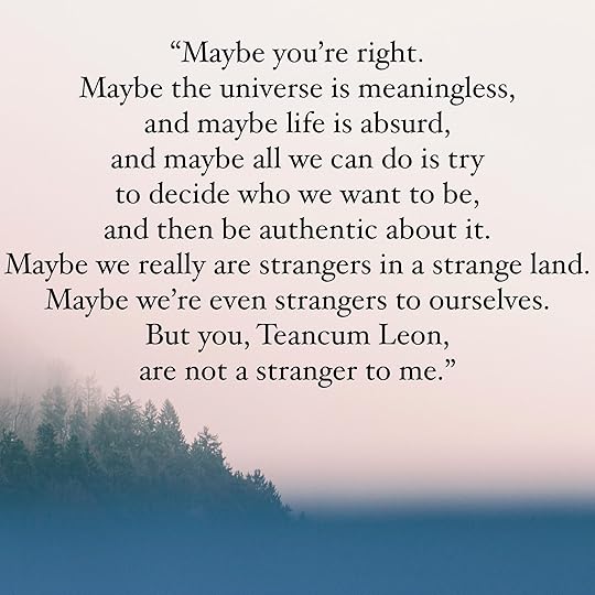 "Maybe you're right. Maybe the universe is meaningless, and maybe life is absurd, and maybe all we can do is try to decide who we want to be, and then be authentic about it. Maybe we really are strangers in a strange land. Maybe we're even strangers to ourselves. But you, Teancum Leon, are not a stranger to me."