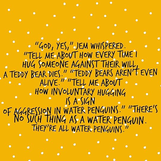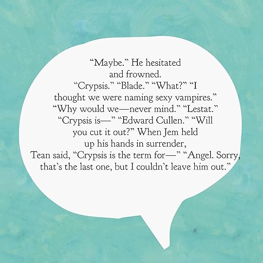 "Never mind. I'll just make a note in my phone." As they climbed onto the porch, Jem took out his phone and said to the virtual assistant, "Remind me to hug Tean like a crazy motherfucker."