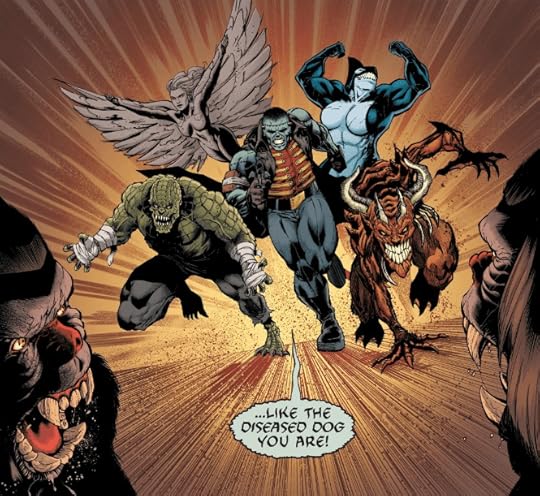 All that being said, story was fine, pretty straightforward but I'm really here for the art because that was pretty cool. Croc and Frankenstein really stood out. Though Orca's kind of disconcerting to look at.