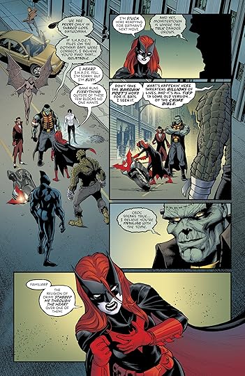 A parte Killer Croc avevo poca o inesistente confidenza con i personaggi e, non avendo letto Leviathan, City of Bane, 7 Soldiers e tanti altri eventi o storie DC precedenti a questa miniserie, è stato un po' come entrare al cinema a film iniziato, ma questo non ha inficiato troppo sulla lettura ed anzi mi ha fatto venire voglia di leggere anche le suddette saghe e le storie di Batwoman relative alla Bibbia dei Criminali.