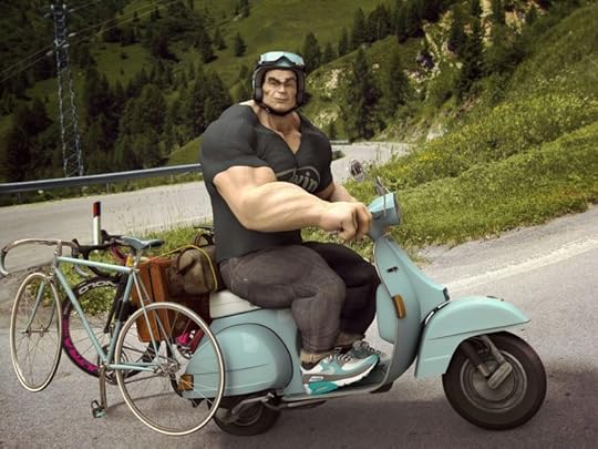 Leon finished clipping his helmet and strapping on the tiny goggles over his eyes. Then he somehow maneuvered himself onto an electric scooter that looked comically small for him.