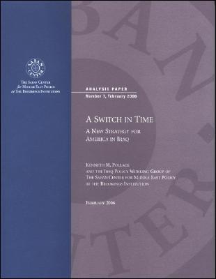 " There is no greater foreign policy challenge for the United States today than the reconstruction of Iraq. The Saban Center for Middle East Policy at Brookings recently assembled a small group of experts to consider U.S. policy toward Iraq in all of its dimensions—military, political, and economic. Saban Center director of research Ken Pollack took the recommendations of the Iraq Policy Working Group and combined them with findings from trips to Iraq and to U.S. Central Command in Tampa to produce A Switch in Time, a comprehensive strategy for stabilizing Iraq in the near term and setting it back on the path toward political and economic advancement. The current U.S. approach is encountering considerable difficulty and appears unlikely to produce a stable Iraq within the next few years, not only because of the military insurgency but also because of government failure in the overthrown Saddam regime was not replaced by effective military or political institutions. The alternative proposed by some Bush administration critics, however—a rapid withdrawal—would not serve U.S. interests. While many thoughtful experts have attempted to offer a realistic third course of action, none has so far succeeded. This report proposes such a strategy by detailing the essential need to integrate military, political, and economic policies in Iraq. This concise and straightforward book offers a comprehensive, alternative approach to current U.S. military, political, and economic policies in Iraq. Iraq Policy Working Raad Alkadiri (PFC Energy Consulting), Frederick Barton (Center for Strategic and International Studies), Daniel Byman (Saban Center and Georgetown University), Noah Feldman (New York University), Paul Hughes (United States Army [ret.], United States Institute of Peace), Brian Katulis (Center for American Progress), Andrew Krepinevich Jr. (United States Army [ret.], Center for Strategic and Budgetary Assessments),Andrew Parasiliti (Barbour, Griffith & Rogers), Kenneth M. Pollack (Saban Center), Irena Sargsyan (Saban Center), and Joseph Siegle (Development Alternatives) "