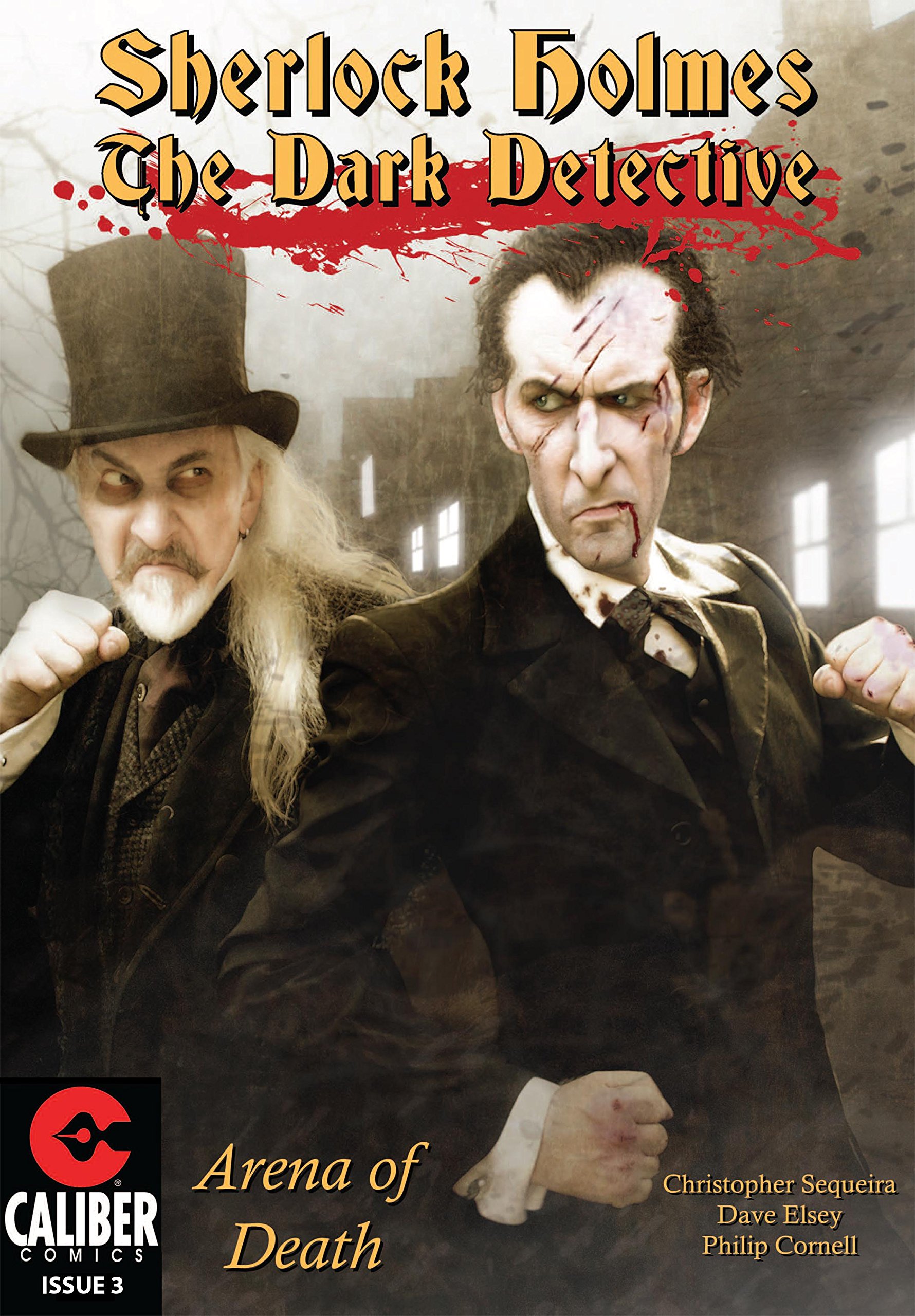 The Claws of the Chimera. Part 3 - "Arena of Darkness”. A deadly and fantastic creature stalks London, preying on victims for no obvious common reason. Whilst this case challenges all Holmes’ rational thinking processes he has no choice but to pursue answers, into the dark, and seemingly to oblivion, and Watson has no choice but to follow. At story’s end the truth will out, no matter how disturbing, and just how that truth intertwines Holmes’ actions with those of Professor Moriarty will have lasting ramifications. The epic conclusion. From Christopher Sequeira (X-Men vs. Vampires) and Academy Award winner Dave Elsey. “Writer Christopher Sequeira does a smooth job of blending the cerebral detective Holmes with the classic horror elements. Certainly one to highly recommend for its fresh stories centered on the iconic Holmes.” - Calvin Daniels, Yorktown WebExtra “If you haven't got into The Dark Detective yet then you are missing out in a major way.” - ScaryMinds “Sherlock Holmes has long been featured in comic books, but few have the wit, literary style, and attention to detail found on every page of the Dark Detective! Every fan of Sherlock Holmes—whether a comic-book reader or not—will be enthralled by this brilliant series!” - Leslie S. Klinger, editor of The New Annotated Sherlock Holmes and The Annotated Sandman “…heartily recommend this series that can be described as Holmes meets Hammer Horror.” - Doyleockians