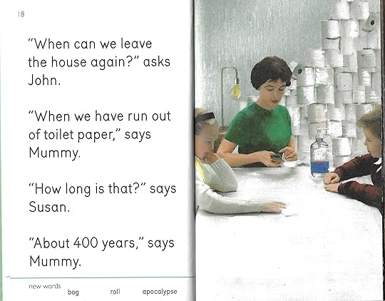 In Series 2a of the latest Dung Beetle Books title, Mummy, John and Susan go through an indefinite period of self-isolation during lockdown. In this solitary time, the children will be forcibly adapted to the 'new normal', where a joyless existence is heroically embraced to save humanity. The children will come to have no real-life friends, no education, and conditioned to see their peers as portable germ vessels.