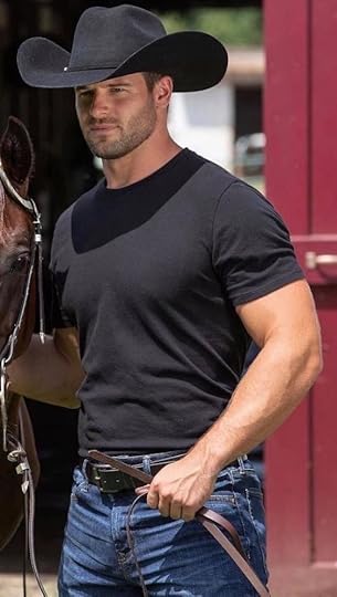 Every time she mentioned that Griffin had a cowboy belt, boots and hat and ran a farm, this is all I could see: