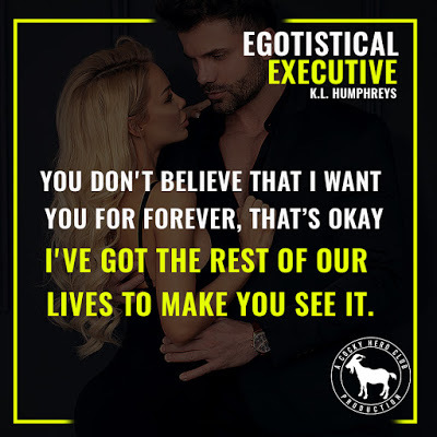 Egotistical Executive was my first read from K.L. Humphreys and it was so freakin' good!! This story had all the feels and I loved Mel and Eli, granted I didn't much like Eli at first, but then neither did Mel...there was quite the spark between them and Eli was really attracted to Mel because she didn't take any of his shit, and she gave it right back!! Will Eli be able to change Mel's opinion of him? Is Mel the one woman who can bring Eli to his knees and make him want more? You'll just have to read this awesome book and find out!! Oh, and you'll fall instantly in love with Ethan...this may have been my introduction to the world of K.L. Humphreys, but it won't be my last!!