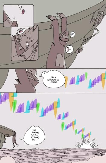 This was kind of a laid back story that meanders around a bit before coming together. The reader gets plopped down, with no explanation, into an unknown desert world with walking cities being attacked by some mysterious something, spend some time with an escaped convict trying to find the long lost daughter of an old friend, then some time with the daughter. These three storylines converge near the end, with a lot of weirdness. The story is interesting, with lots of moody moods, some intrigue, a bit of action, and a lot of what's going on here- basically, don't expect to fully know what happening, and be prepared to speculate (which can be quite fun). I enjoyed the fill in the blanks aspect, but YMMV. The art is the star here- it does the heavy labor, the world building. There is an incredible amount of detail in the illustration, and sometimes several pages will go by without any text and you don't notice, because the story is moved along so well by the art. The art is gorgeous, with qualities of Moebius and Windsor McCay while being unique, and really adds to the dreamlike quality of the story. Read this if you want a trippy escape from reality that you don't have to think about too hard; you can just let this wash over you, and get caught up in the flow.
