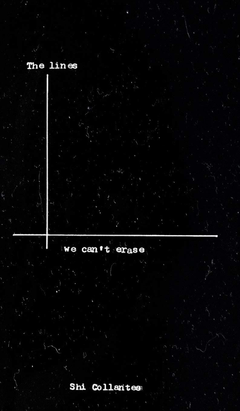 The Lines We Can't Erase is Shi Collantes' first book. This is an unsaturated blend of night and day. Where love exists, there lurks pain in hidden areas where love is not returned, unnoticed, or lost. This is her darkest sunset. This is where two opposite things are exhibited in a black and white weave.