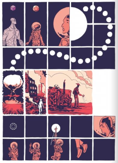 Earth is dying, worlds get explored. Someone almost dies and another one gets granted the gift of life. All presented without text and in beautiful, beautiful panels that play with time and space.