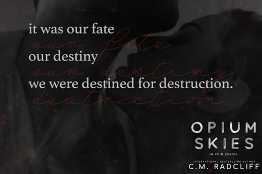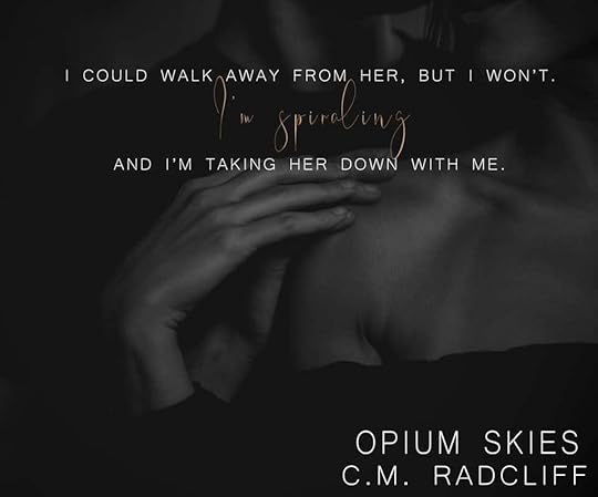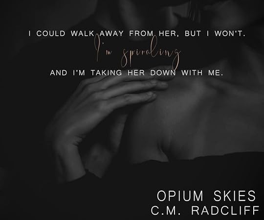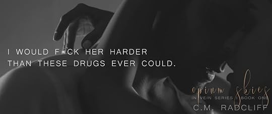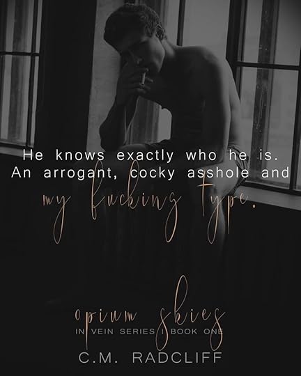 ⭐️⭐️⭐️⭐️½ 𝑶𝒗𝒆𝒓𝒂𝒍𝒍 𝑹𝒂𝒕𝒊𝒏𝒈: Opium Skies, book one in the In Vein Series by C.M. Radcliff is nothing like I expected and better than I ever could have imagined. This contemporary dark romance is heartbreakingly beautiful. I connected and felt so much for both of these characters. I personally have been on BOTH sides of this story. I have been an addict, and I have been in love with an addict. Opium Skies is NOT a sweet romance, this one is a really hard, really freaking tough read that centers around love, and addiction.“𝙷𝚎 𝚠𝚊𝚜 𝚝𝚑𝚎 𝚕𝚊𝚜𝚝 𝚝𝚑𝚒𝚗𝚐 𝚊𝚗𝚍 𝚎𝚟𝚎𝚛𝚢𝚝𝚑𝚒𝚗𝚐 𝚝𝚑𝚊𝚝 𝙸 𝚎𝚟𝚎𝚛 𝚗𝚎𝚎𝚍𝚎𝚍. 𝙻𝚒𝚔𝚎 𝚊𝚗 𝚞𝚗𝚌𝚘𝚗𝚝𝚛𝚘𝚕𝚕𝚊𝚋𝚕𝚎 𝚠𝚑𝚒𝚛𝚕𝚠𝚒𝚗𝚍, 𝚑𝚎 𝚝𝚘𝚛𝚎 𝚝𝚑𝚛𝚘𝚞𝚐𝚑 𝚎𝚟𝚎𝚛𝚢 𝚊𝚜𝚙𝚎𝚌𝚝 𝚘𝚏 𝚖𝚢 𝚕𝚒𝚏𝚎, 𝚜𝚝𝚛𝚒𝚙𝚙𝚒𝚗𝚐 𝚖𝚎 𝚋𝚊𝚛𝚎 𝚘𝚏 𝚎𝚟𝚎𝚛𝚢𝚝𝚑𝚒𝚗𝚐 𝙸 𝚎𝚟𝚎𝚛 𝚑𝚊𝚍. 𝙰𝚗𝚍 𝚏𝚘𝚛 𝚜𝚘𝚖𝚎 𝚜𝚒𝚌𝚔, 𝚏𝚞𝚌𝚔𝚎𝚍-𝚞𝚙 𝚛𝚎𝚊𝚜𝚘𝚗-—𝚝𝚑𝚛𝚘𝚞𝚐𝚑 𝚝𝚑𝚎 𝚞𝚙𝚜 𝚊𝚗𝚍 𝚍𝚘𝚠𝚗𝚜—𝙸 𝚕𝚘𝚟𝚎𝚍 𝚎𝚟𝚎𝚛𝚢 𝚖𝚒𝚗𝚞𝚝𝚎 𝚘𝚏 𝚒𝚝.