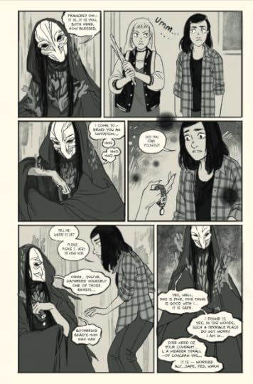 That being said, this comic is FAST. The pacing allows no time for the reader or characters to process anything that's happening. Even from panel to panel, it feels extremely rushed. It felt that way from the start-- almost like I was starting on volume two instead of one. Halfway through I actually flipped back to double check that I HAD picked up the first volume. I think this is all meant to lend an air of mystery to what happened to Frances and Piper, but it doesn't land at all. It makes their relationship and personalities feel fairly flat and the tension between them seem unwarranted.