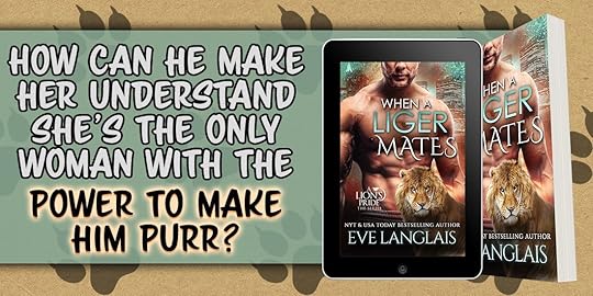 WHEN A LIGER MATES is the 10th book in Eve Langlais' A LION'S PRIDE series. OMG what a phenomenal, fast-paced, humorous and exciting journey. Eve Langlais had me hooked from start to finish. She did a magnificently awesome job. 5 Golden Stars 🌟 🌟 🌟 🌟