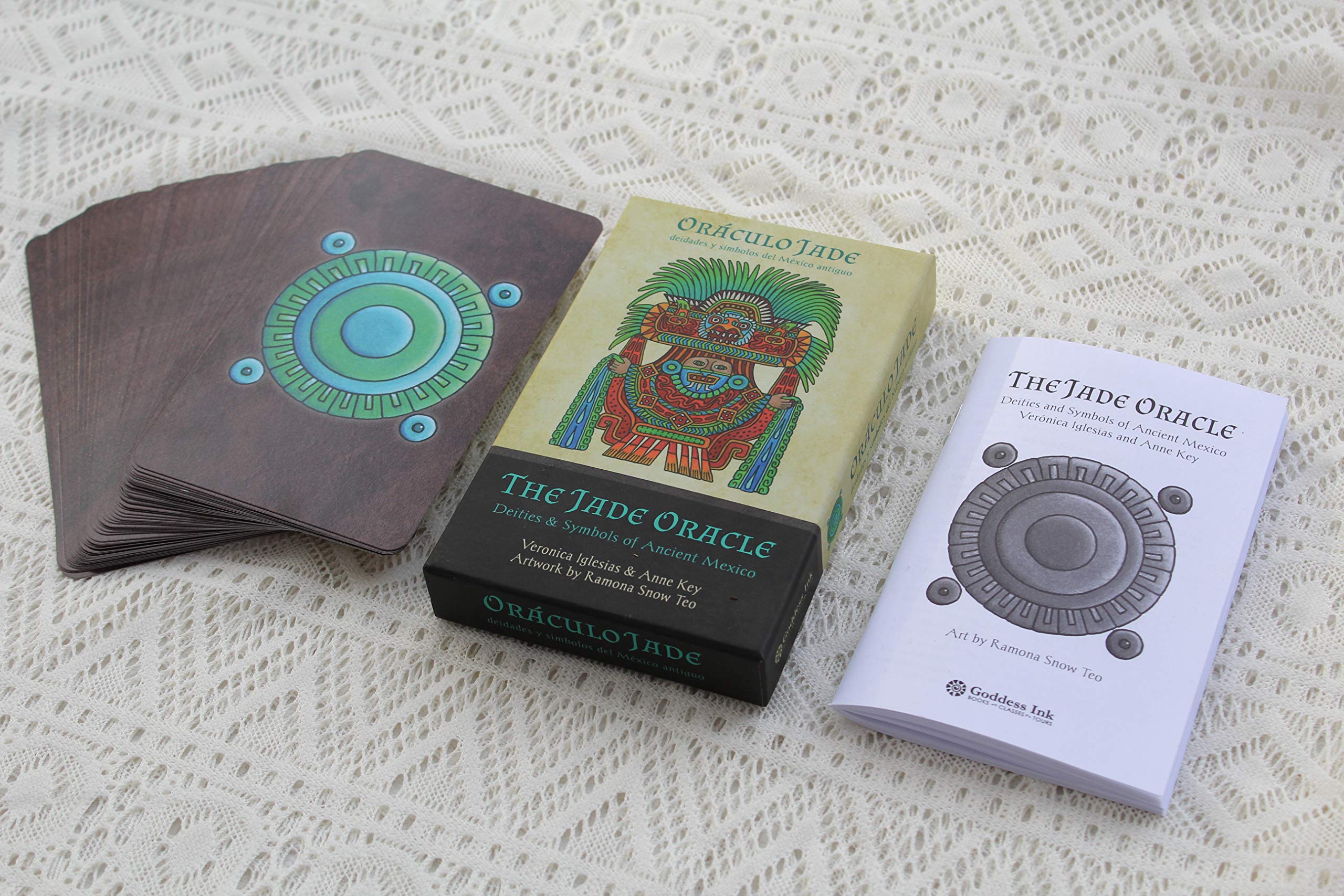 The Jade Oracle Deck features original artwork and brings the wisdom of ancient Mexican symbolism to a new generation. Each beautifully boxed set includes 52 cards (exquisite design and color, size 3.5" x 5.5") and a guide booklet in English AND Spanish. These sacred images and names open the door to a profoundly magnificent culture that reveres the connection of the earth and Her inhabitants, that celebrates the small and grand cycles – that infuses ritual and attention to the sacred in daily life. We named this deck The Jade Oracle because exquisite green jade was one of the most sacred stones in ancient Mexico, as the color represented the teeming bounty of life. There are 52 beautifully illustrated cards accompanied by a booklet that guides you through understanding the mythology and interpretations of the cards. We feel that when we understand another culture, we understand ourselves in a deeper way and are one step closer to connecting with our global family and celebrating this magical land that we share. And for those of us with Mexican heritage, this is a path to understanding, and living, our lineage.
