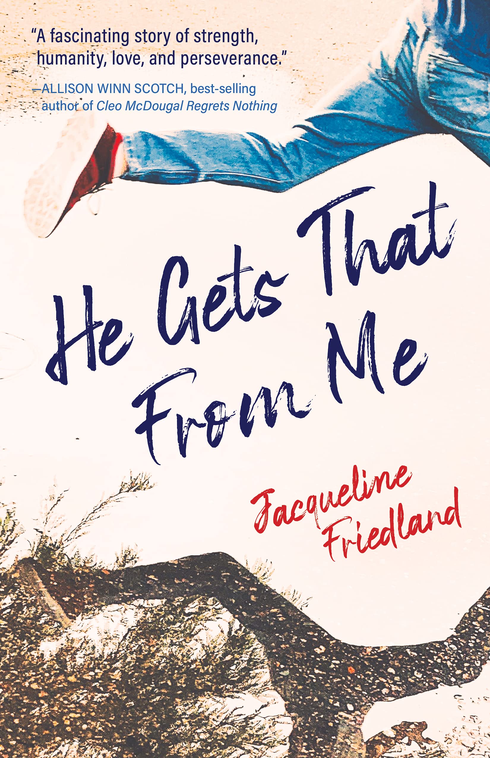 Author Jacqueline Friedland has created a thought-provoking story which challenges the reader to consider what truly constitutes a family. And makes you wonder what you would do in this situation. The story is told from both Maggie and Donovan’s point of view. He Gets That From Me is a real tug of the heart with no easy answers. There’s much to discuss which makes this a perfect book club read.