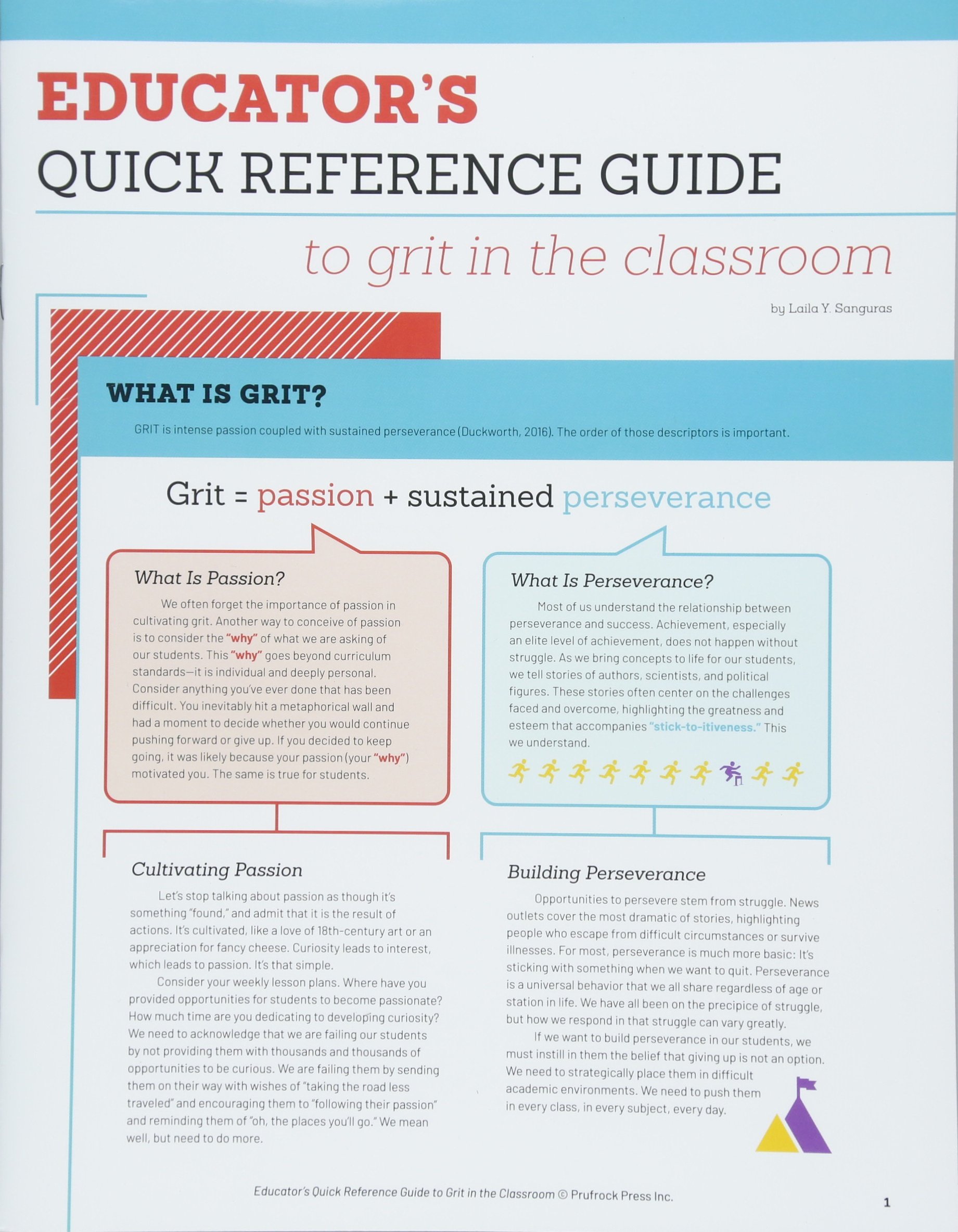 The combination of sustained hard work and resiliency, grit is the difference between those who give up and those who don't. This quick reference guide provides educators with an easy-to-read overview of ideas for creating a learning environment that fosters grit development for all students, regardless of ability. The guide includes practical, research-based strategies for teachers, coordinators, and administrators for creating a “gritty” school culture. It also describes grit and its connections to perseverance, growth mindsets, goal orientation, and talent development. With its concise format, this guide is perfect for educators new to grit development or those looking for an at-a-glance review of major components.