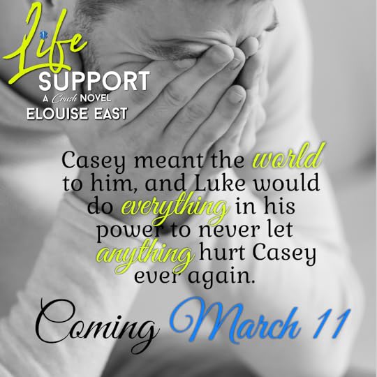 Life Support is the sixth book in the Crush series by Elouise East. This book is about Casey and Luke. Casey gets sexual assaulted by a collegue. If this is a trigger for you don't read because it happens on page, multiple times. He seeks out a trainer to help him to learn how to defend himself. That trainer is Luke. A trainer who struggles with his own self worth.