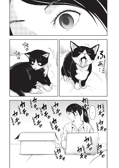 There's also some proportion errors in a few drawings, like in page 21, where the man announcing that a stray cat is taken in Riko's workplace for adoption, his arms seem contorted, like he has a dystonic arm. At the end, Riko sent pictures of her cat Musubi to her coworkers through her alt account, and somehow they don't immediately see that it is her account. I am not going to deal with this any longer. I'm not reading the sequel.