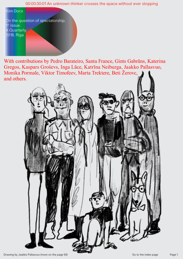 “Kim Docs” is a digital quarterly magazine. Its first issue is dedicated to the question of audiences. Many questions will pass through the scrolling pages. Who exactly is the contemporary art audience (historically, conceptually, statistically, etc.)? What does it mean for an institution to create its audience or, to make the question more interesting, how do audiences create institutions and influence programming and the scene itself? What choices does an audience have while being entangled by the artistic realm, capital, curatorial frameworks, state, etc. into this gallery-museum-capital-state-complex of contemporary art? Who are we, the contemporary art audiences in the great new world who not only declare “the end of politics” is “after the nature” (referring to the books “After Nature: A Politics for the Anthropocene” by Jedediah Purdy or “Thinking like a Mall. Environmental Philosophy after the End of Nature” by Steven Vogel), announce that “we have never been modern” (Bruno Latour), “we have never been human” (Donna Haraway) or “we have never been only human” (Michel Foucault), inhuman, posthuman (Rosi Braidotti)?