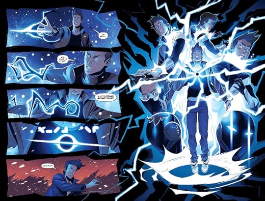This was a meh read for me. I liked the artwork and colors; and the best friend was funny at first. But the main character read like a cardboard cutout who accepted events way to quickly; I wasn't interested in him at all. The story felt rushed, like we'd missed integral thoughts, conversations, and decisions that would've happened after someone stumbled upon a powers-giving black hole.