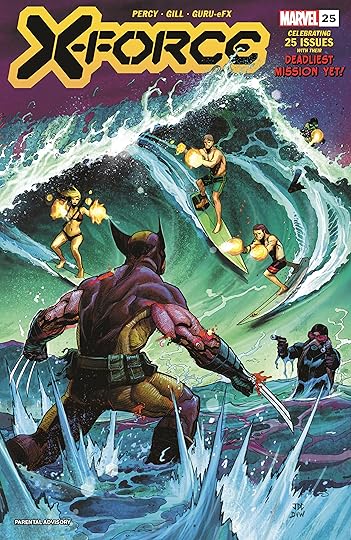 For me, X-Force took a slight step backwards with this Volume. The story gets a bit convoluted (which I'll talk about in a second) and that lended itself to feeling more like filler. Highlights: - When a load of "zombies" wash up on the shores of Krakoa, X-Force goes on the job, finding that they were all possessed by some kind of "biological dirty bomb" which leads part of the team (Logan, Beast, Forge, and Kid Omega) into the ocean deep of Krakoa. They do find monsters (as they should), but are saved and kicked out by Namor. - There's an entire section in the middle reserved for the evolution of the character of Quentin Quire (Kid Omega, who after this should just go by Omega). I have never really enjoyed this character, but when you add in a change of art style and make the story a bit odd, I found it harder to follow along. Using the wiki, I narrow it down to this: - Kid Omega wants to stop being so much like a kid. Along with his girlfriend Phoebe Cuckoo, he goes to see Jumbo Carnation, who gives him a new outfit. He begins investigating deaths of himself and his teammates and comes to the realization that it is a kind of psychic remnant of him, from the experiments that XENO did on him, that is killing them. With the help of Jean Grey and a few others, he is able to defeat that side of him and begin living normally. - The Hellfire Gala is in full swing, and we get both the X-Force and Wolverine issues here. While the funniest part of it all is when Deadpool tries to crash the party only to have to battle Logan on the beach, the real issue revolves around Beast. Having utilized the telefloronic tech by running it through Black Tom, Forge and Krakoa, he is able to control the leadership of Terra Verde, effectively making them a colony of Krakoa. Emma Frost discovers it and shuts it down which loses them as an ally, and creates animosity and mistrust towards Beast. (What is his deal lately?) - The Volume ends with showing that the Marauder boat has been stolen and is burning off the coast of Madripoor, which is where I guess we are going next....