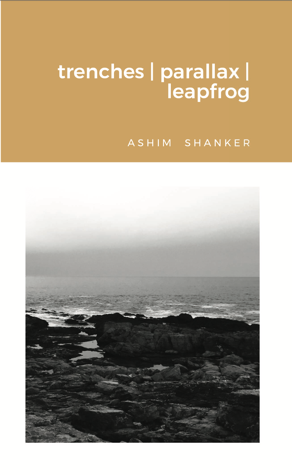 'trenches parallax leapfrog' is a selection of 3 short fictions first written between 2000 and 2003 (when the author was in his early 20s) and re-edited in 2020 (in his early 40s). the stories are a culmination of an identity driven to its most absurd extremes. varied incarnations of this maniacal consciousness navigate spaces where conventions and codes are fences to be brushed up against, where the exploratory spirit fulminates against the rigors of ancient authority, and where the future is at war with the past–spaces that, even when visited in retrospect, offer no hope for solutions, but only more maddening and beautiful questions.