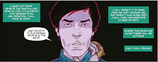 We have lots of text. Pages crammed full of text. I'm not complaining, because it's necessary, but it's still breaking one of the cardinal rules of comics. Gaiman, this is not. But if you're a fan of Dune, or fan enough that you want a pretty good refresher, then this does a fine job.