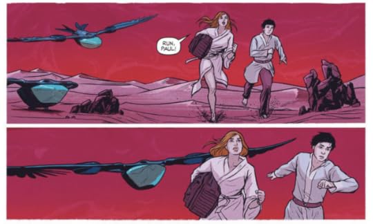The art is this is alright. Nothing really to write home about, but it does have kind of a cool 80s vibe particularly in the color palettes. Honestly the cover art is better than what is inside, and it isn't as sleek as the art in the prequel graphic novels like Dune: House Atreides Vol. 1. But it does capture the epic scale of things.