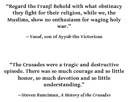 But then again, the Faranji are barbarians and brutes. They conquered a land and discarded its customs. They killed their fellow believers, the local Nasrani, and called it a mercy when they arrived on these shores a hundred years ago. Said they were sending the dead to heaven to let God decide who was a heretic and who was saved through their belief in the Lord Almighty.I'm not sure what this is referring to. It may be referring to the siege of Antioch (1097-98), where the Crusaders allied with Christians inside the city who let them inside. The Christians and Muslims were intermingled so when the Crusaders attacked the Muslims, they killed some Christians by accident. If that’s what this paragraph is about then it makes it sound like the Crusaders killed Eastern Christians on purpose for some idiotic self-righteous reason that makes no sense.
