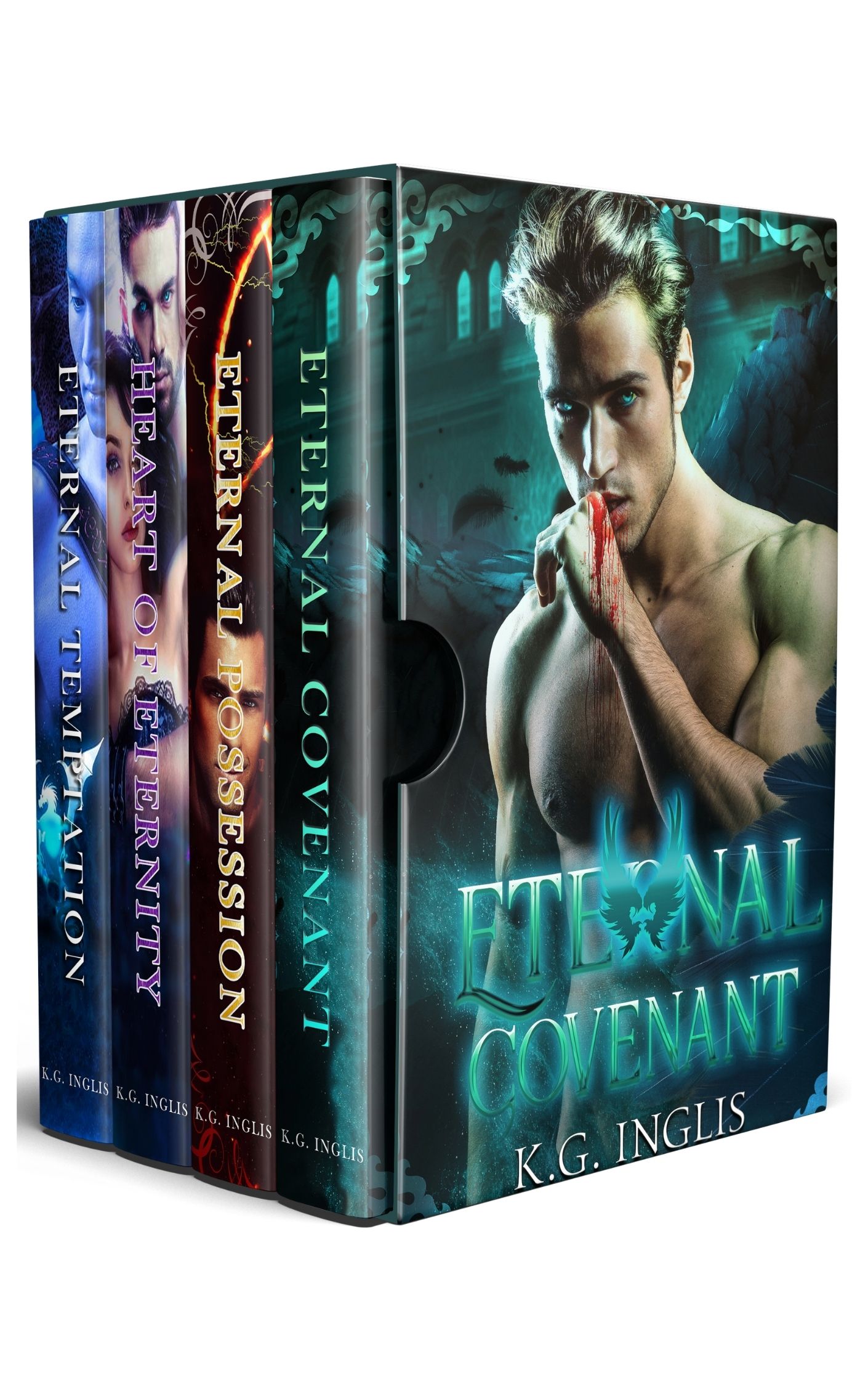 Eternal Possession: An Eternal Novel (Eternal Series Book 2 By K G Inglis. I loved this book ! Yes it’s a bit slow in the beginning but then it is so entertaining. Alex and Ahriman and Abby wow steamy Hot. Ahriman is a heartless , soulless A Hole. However, he take over Alex wonderful body but he could never control his soul , heart rrand love for Abby. In the end I liked Ahriman he learned a wonderful lesson before he departs. Heart of Eternity (Eternal Series Book 3) By K.G.Inglis. This series is addictive, enthralling, captivating. I love this book Teagan , Saladin, all the characters are running out of time to save one of their own . Yet when they think one Enemy is taken care of a new one comes about. Eternal Temptation: (An Eternal Novel Book 4) By: K.G. Inglis. The Wyvern leader Bordan has become obsessed with forcing Paige to mate with his son. Narayan is lost without Paige and will move Heaven and earth to protect her. Wonderful story all the characters from previous book come together to fight a war.