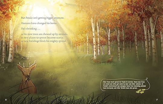 Wow! This book is so informative and so beautiful! I loved learning about Pando and all the ways we can protect him in the future. The text flowed like informational poetry, and the illustrations left me breathless. Now I must go visit Pando, but first I need to take a walk and be a part of nature. So inspiring!