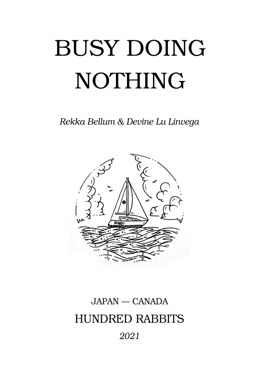 Busy Doing Nothing is a book by Hundred Rabbits. It's more like a diary or a logbook of the whole journey they had sailing from Japan to Canada through the Pacific Ocean.
