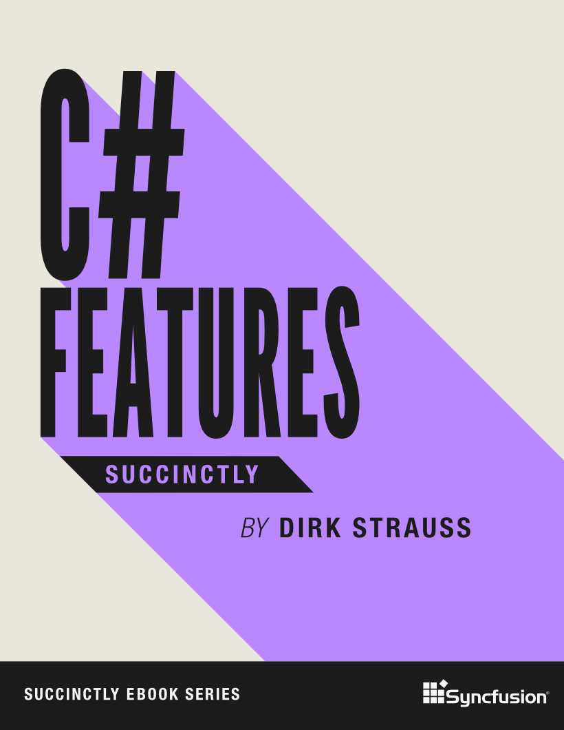 OVERVIEW C# Features Succinctly is a concise guide to the significant features packaged in C# 7, 8, and 9. To help readers understand the evolution of the language, author Dirk Strauss first covers the important additions that arrived in version 7, such as tuples, pattern matching, and out variables. Next, he covers more than a dozen features in version 8, from nullable reference types to unmanaged constructed types. Finally, readers get a taste of the latest features in C# 9, and some of the productivity enhancements provided to .NET developers in Visual Studio.