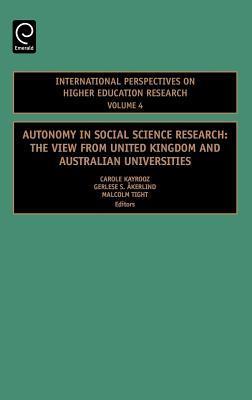 This book examines how and why autonomy matters in contemporary social science research. It considers how autonomy impacts upon the individual researcher, the cultures and values of the university, and research motivation and sponsorship. The authors provide a better understanding of the interplay between individual and institutional autonomy, the issues arising from this interplay, and the value of an independent academic sector to the external community. Successive chapters the variation in social scientists understanding of academic freedom; the researchers view on academic autonomy and decision making; the influence of Hayek on thinking about freedom and markets; the idea of academic freedom in 14th century Oxford; the policy basis for academic freedom and autonomy in Australia; the extent to which autonomy can be seen in the career of one academic; the particular case of research into higher education itself; and, the impact of the research assessment exercise in the United Kingdom. The book sheds light on a critically important but under-studied issue, seeking to offer a clarification of the meaning of academic freedom and autonomy, and the roles of institutional regulatory and managerial environments in supporting them. The authors include experts from the UK and Australia; chapters go in to autonomy within specific contexts (14th century Oxford, Australia, etc.).