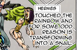 Heavy Weather part 10 (ch 728): What's going awn ?! The snails and subliminal messages are so crazy I almost could not suspend my disbelief for them !! I am also so intrigued by Versace's, Emporio's, and Pucci's stands since they are like materializing memories.