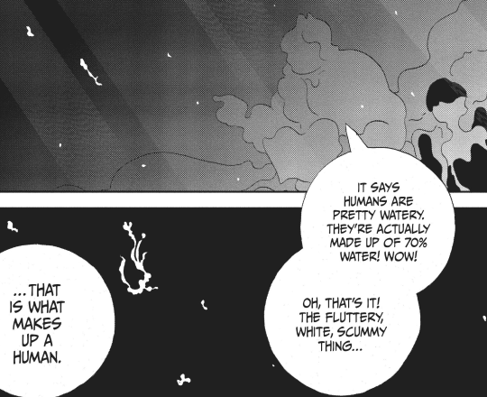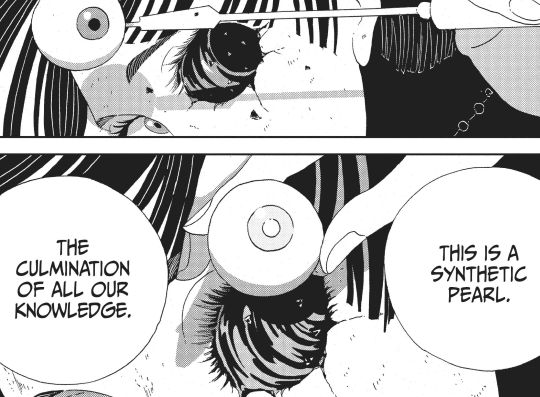 - huh, so lunar people took the worst aspects of humans, maybe? - sense's secret reveal. that was surprising, but phos is changing even more - not gonna lie, i don't fully get it, but this volume answers some questions bout the purpose of the gems and the lunar people - interesting comparsion between real and synthetic gems - phos is still osing parts of herself, but does this mean that she has the three elements now? - that betrayal is gonna hurt - that eye is suspicious