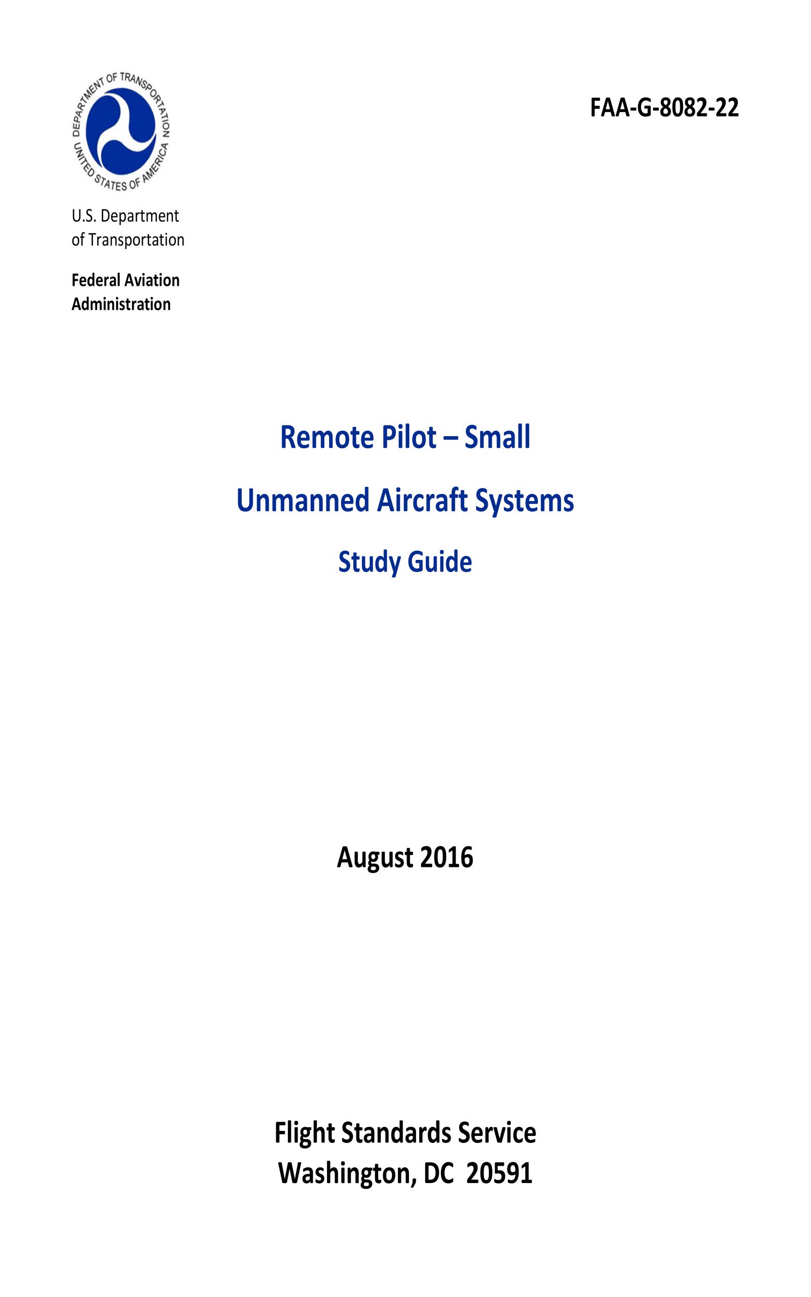The Federal Aviation Administration (FAA) has published the Remote Pilot – Small Unmanned Aircraft Systems (sUAS) Study Guide to communicate the knowledge areas you need to study to prepare to take the Remote Pilot Certificate with an sUAS rating airman knowledge test. This Remote Pilot – Small Unmanned Aircraft Systems Study Guide is available for download from faa.gov. Please send comments regarding this document to afs630comments@faa.gov.