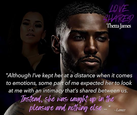 I've been thinking about how to write this review for several days but have come up empty for the right words to sum up the goodness that Love Shared is without saying too much but now my time is up so here we go. Thetta James is brilliant with word building, and creating a world that I got lost in from the jump, not to mention the kicker of female empowerment of these friends. Chass has been watching her best friends find love, and while she's over the moon happy for them, she still longs for it herself. There's a man named Lance, and they're perfect for each other, plus they light the sheets on FIRE, but Lance (while wonderful in his own way) makes questionable decisions that may or may not have him losing Chass. And that's all I'll say about that because I wanted to say less LOL! I'm telling you, the minute I opened this story, I was fully immersed in this world, and didn't move until I devoured every last page as there's so much more to it, so don't pass it up! By the way, I hope that a super hot man gets his own story (hint hint) because I need more of him! HIGHLY HIGHLY HIGHLY RECOMMEND!