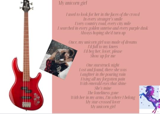 🌟Brief Summary: 3.5 stars maybe 4? Kade has been super successful in all his life goal. He’s a rockstar in a bad with his brothers and super rich but he has been doesn’t have the one thing he REALLY wants… true love. He has been on the search for his UNICORN GIRL. This has lead to lots of failed relationships and after breaking up with his last disastrous relationship he has given up. 5 minutes later he just happens to meet his unicorn girl on the streets on Nashville.