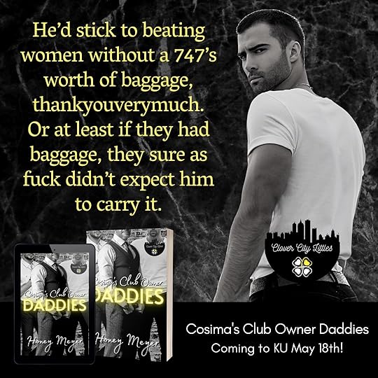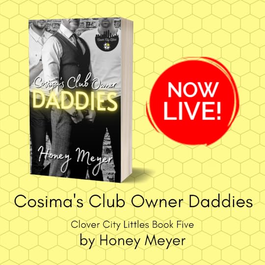 Cosima's Club Owner Daddies by Honey Meyer is the fifth book in the Clover City Littles series and my heart ached, broke, and mended repeatedly throughout this beautiful story surrounding the journey that Cosima, Ian, Hudson, and Ryker go on!