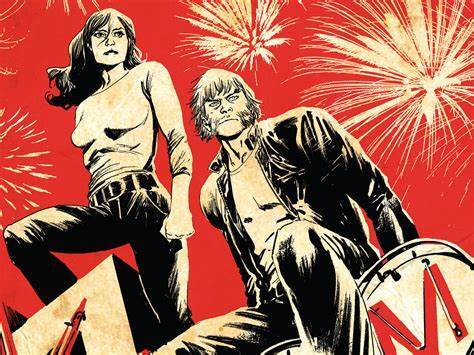 We have jumped forward to 1976, and our characters have scattered to the wind since we left them. Skinner Sweet, having been rendered mortal after his last tangle with the Gray Trader a decade prior, has accepted that he can’t regain his immortality and has decided to become a stuntman in hopes of going out in a blaze of glory. So when he’s approached by Pearl with one more mission, we find out what all our vampires have been up to leading up to the American Bicentennial. Pearl is barely holding things together with the VMS, Felicia is on a mission to save Gus from the Gray Trader who has taken him hostage, Travis Kidd blames himself for the loss of Gus, and we find out that Jim Book has returned to the fold and has been Pearl’s partner for a number of years. Oh, and Mimiteh has come back as well (and HOORAY, she isn’t just a stereotype AND he has clothing this time around). I loved that this took place in 1976, in a year that American was celebrating its history in the face of a lot of bleakness (the loss of the Vietnam war, post-Watergate disillusionment, etc), and as the VMS has to try and stop an apocalypse that is going to happen during the Bicentennial celebration. It��s a great tone, and a great way for the story to wrap up as America has it’s own, in a way, reflection moment. And the big last showdown with the Gray Trader and it’s final push to destroy the world was well thought out and had high stakes and lots of suspense.